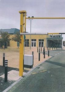 This barrier was installed at a Sainsbury’s store (hence the corporate colour scheme) and is operated by a hydraulic drive ram.