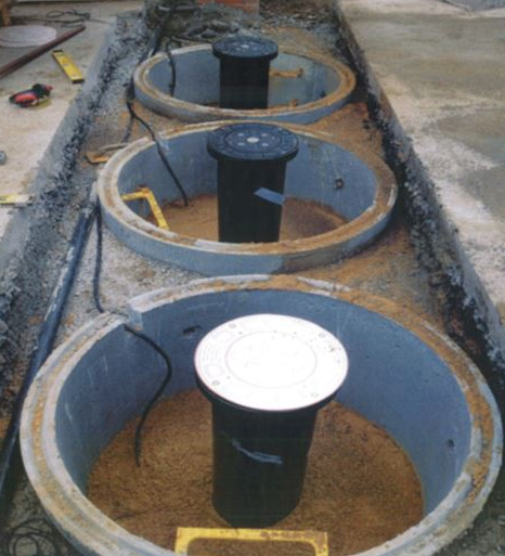 Pits, concrete tubes, sand, drainage, cables and then a final surface finish of tarmac or concrete.