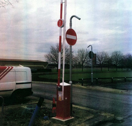 The latest addition to Newgate’s range of traffic barrier accessories – a lamp post, complete with “No Entry” sign.